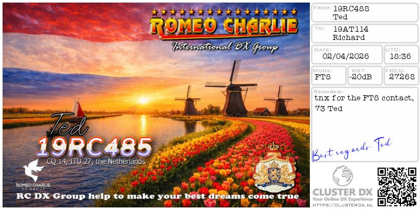 Hi Ted, nice to meet you this evening on FT8, thanks for your e-QSL.